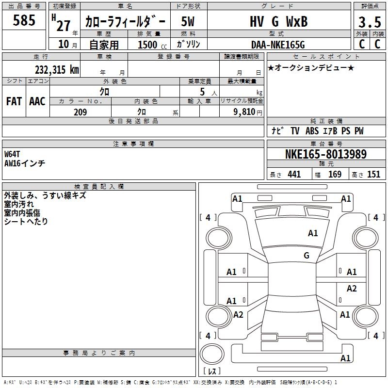 TOYOTA COROLLA FIELDER - лот 585
