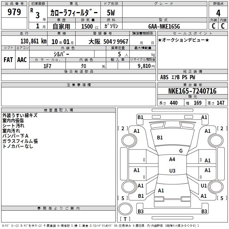 TOYOTA COROLLA FIELDER - лот 979