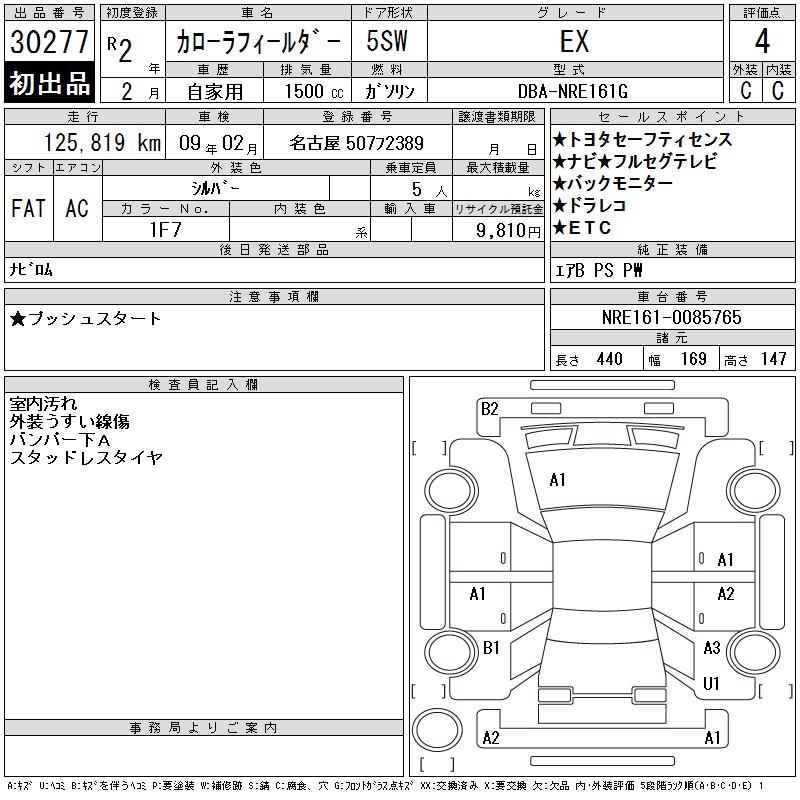 TOYOTA COROLLA FIELDER - лот 30277