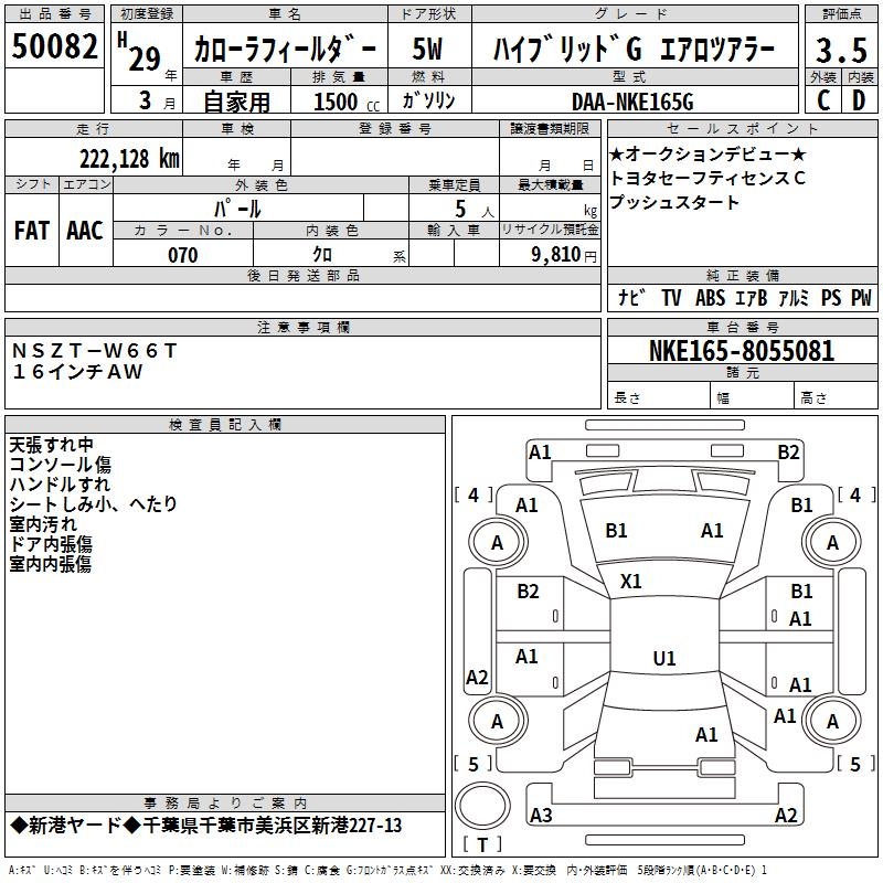 TOYOTA COROLLA FIELDER - лот 50082