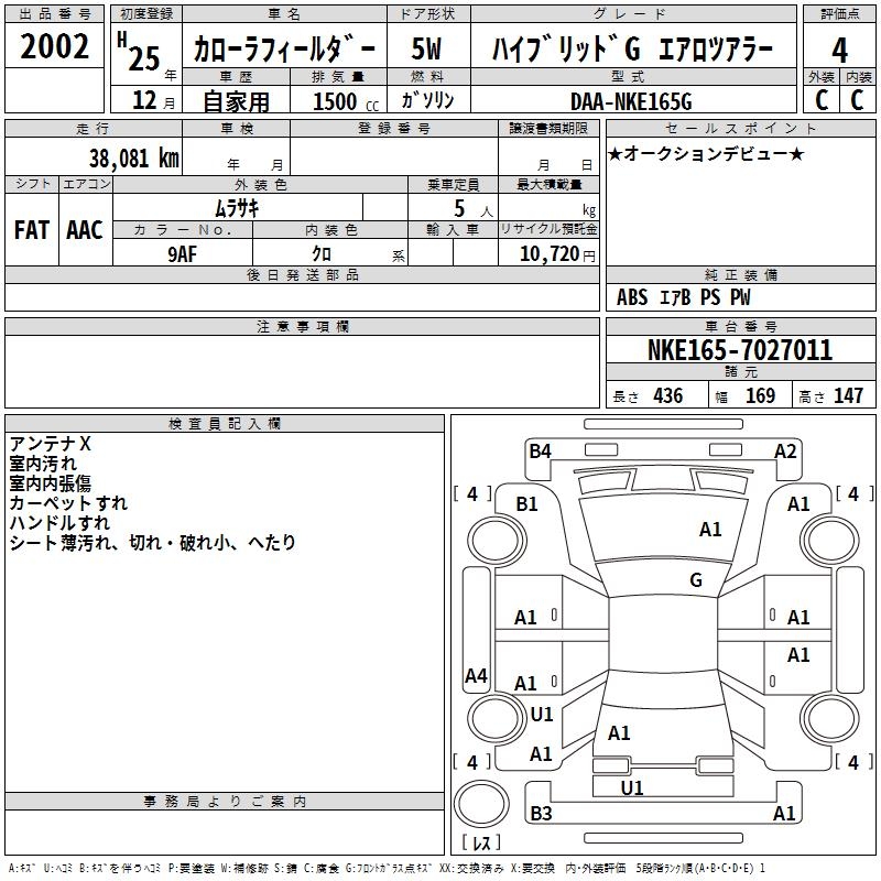 TOYOTA COROLLA FIELDER - лот 2002