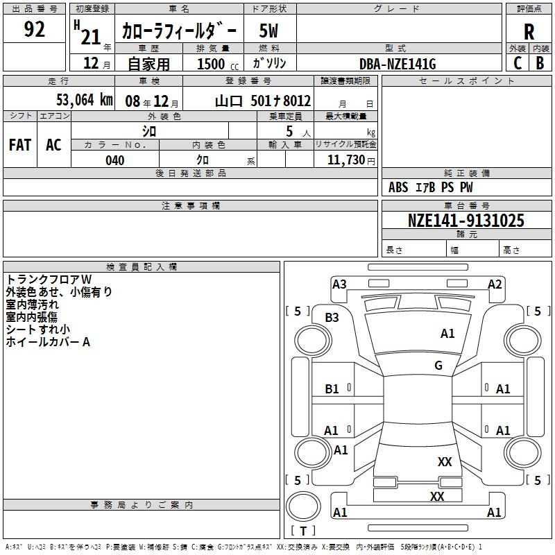 TOYOTA COROLLA FIELDER - лот 92