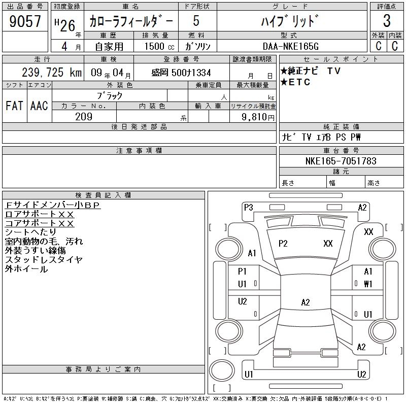 TOYOTA COROLLA FIELDER - лот 9057