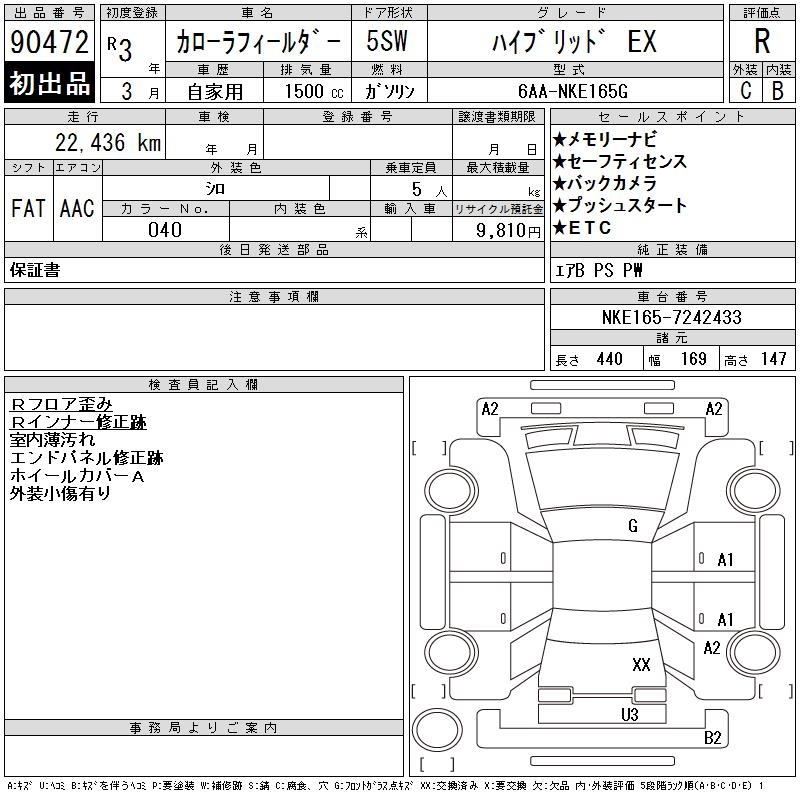 TOYOTA COROLLA FIELDER - лот 90472