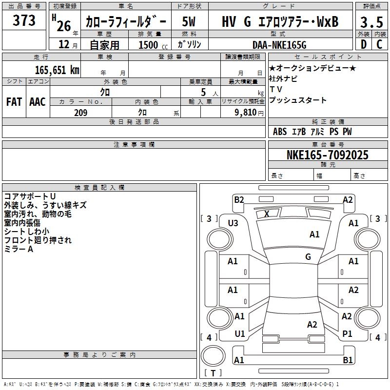 TOYOTA COROLLA FIELDER - лот 373