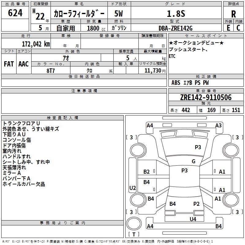 TOYOTA COROLLA FIELDER - лот 624