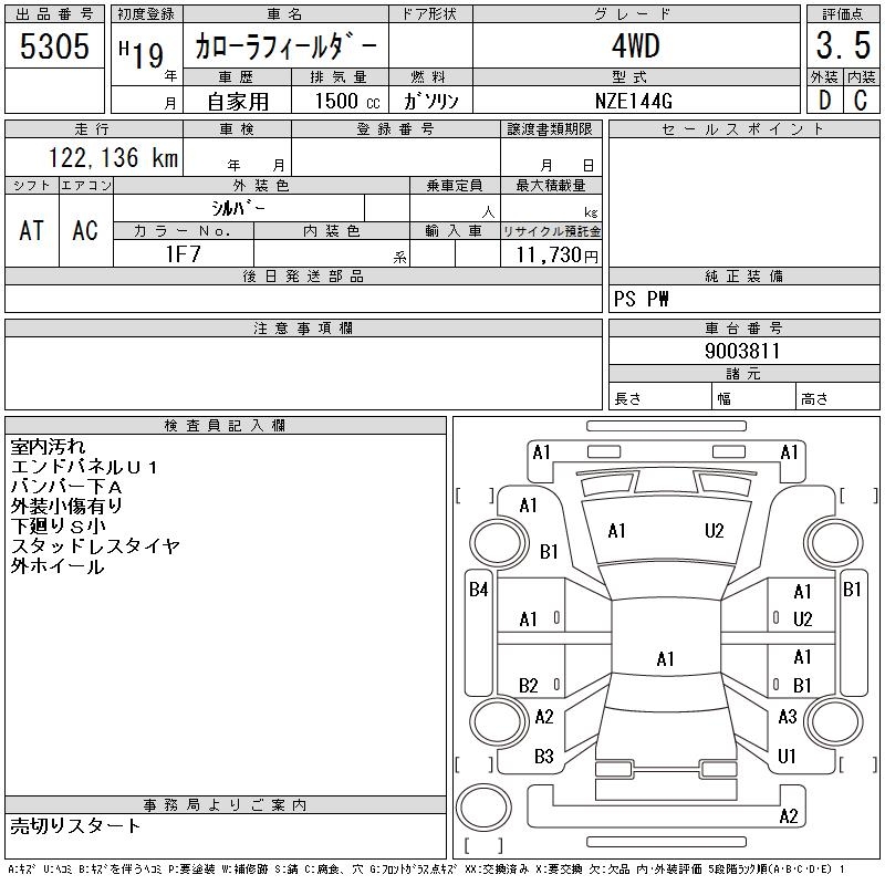 TOYOTA COROLLA FIELDER - лот 5305