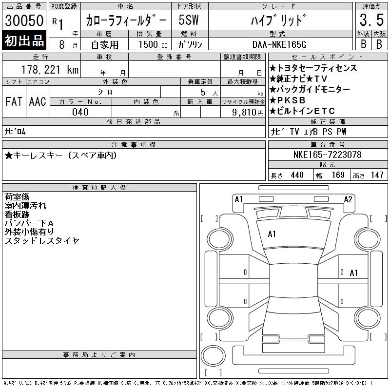 TOYOTA COROLLA FIELDER - лот 30050
