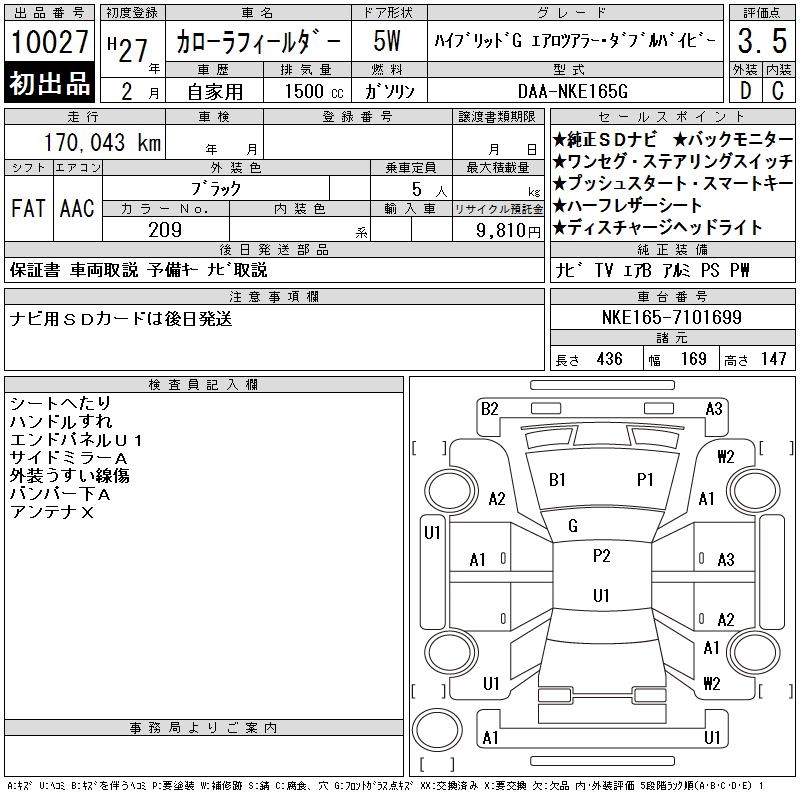 TOYOTA COROLLA FIELDER - лот 10027