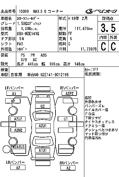 TOYOTA COROLLA FIELDER - лот 10099