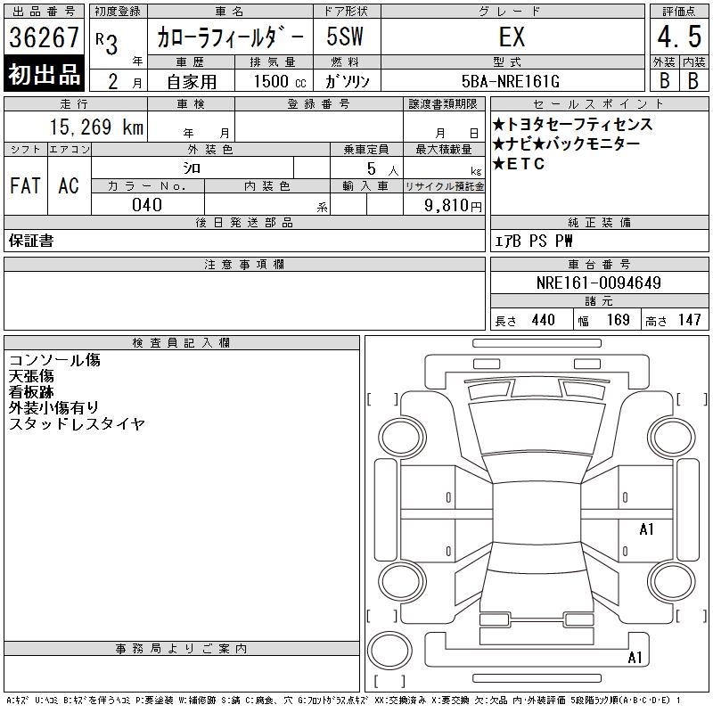 TOYOTA COROLLA FIELDER - лот 36267