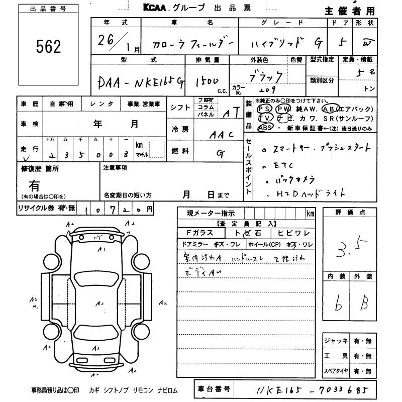 TOYOTA COROLLA FIELDER - лот 562
