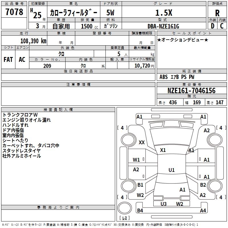 TOYOTA COROLLA FIELDER - лот 7078