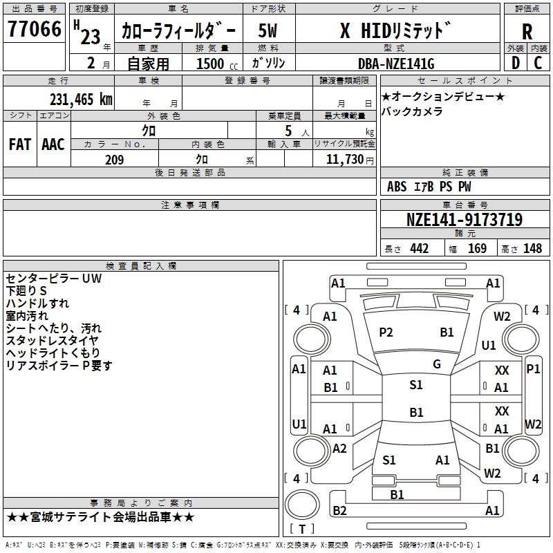 TOYOTA COROLLA FIELDER - лот 77066
