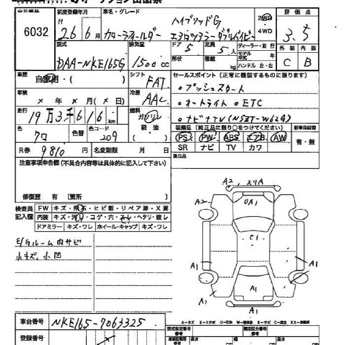TOYOTA COROLLA FIELDER - лот 6032
