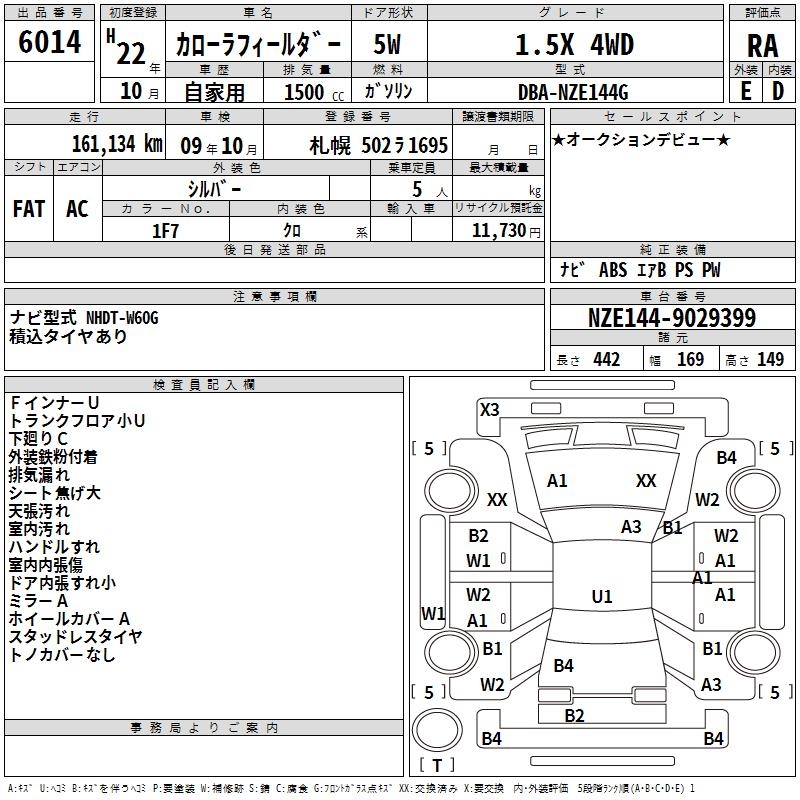 TOYOTA COROLLA FIELDER - лот 6014