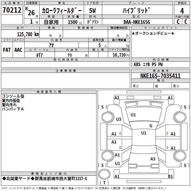 TOYOTA COROLLA FIELDER - лот 70212