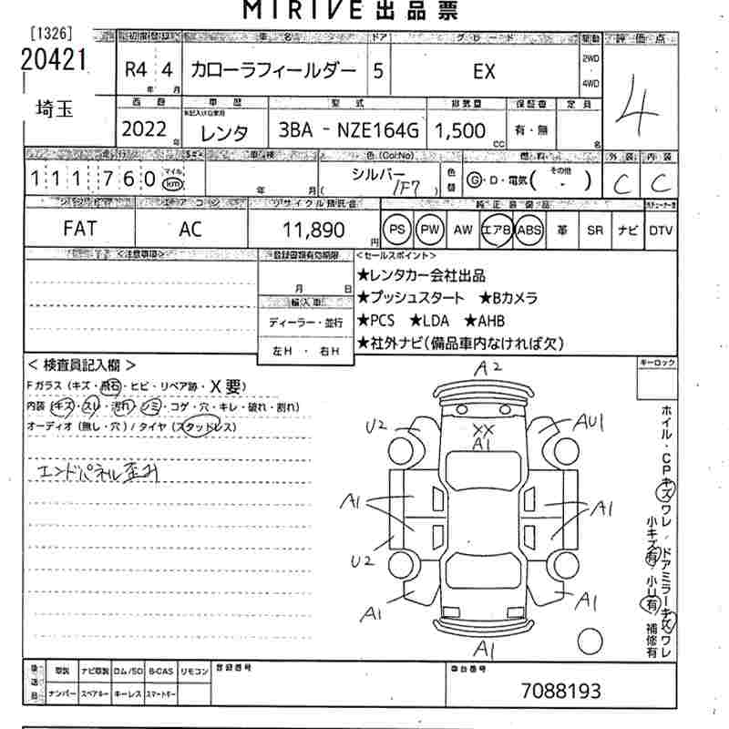 TOYOTA COROLLA FIELDER - лот 20421