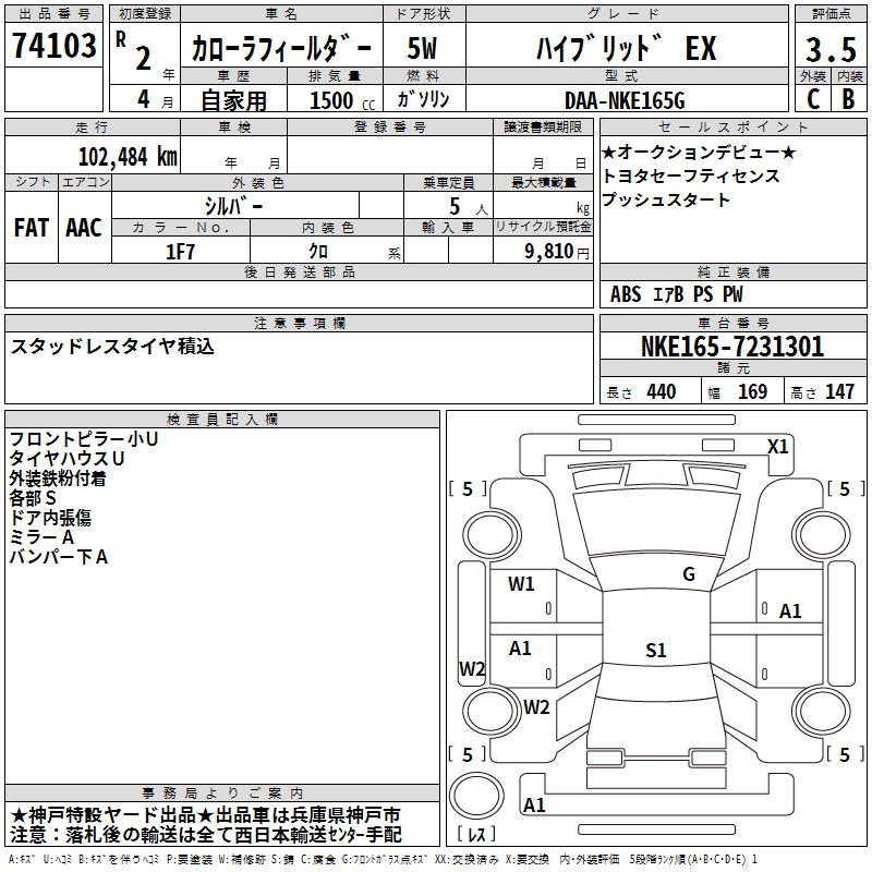 TOYOTA COROLLA FIELDER - лот 74103