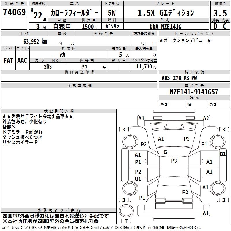 TOYOTA COROLLA FIELDER - лот 74069