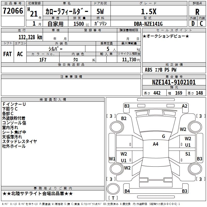 TOYOTA COROLLA FIELDER - лот 72066