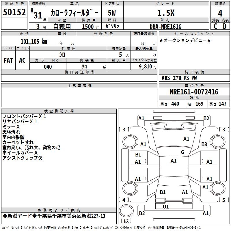 TOYOTA COROLLA FIELDER - лот 50152