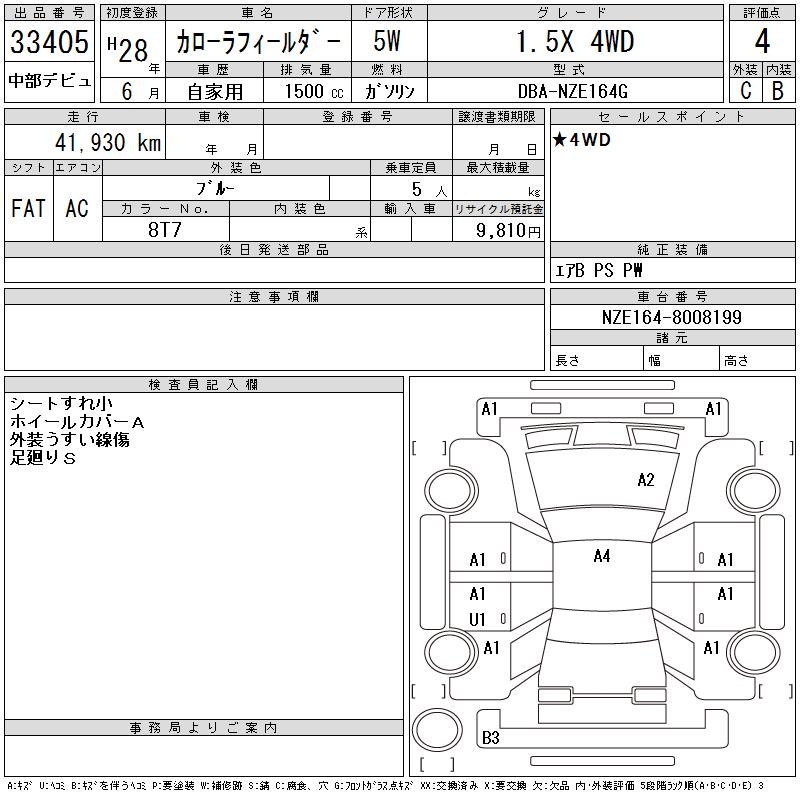 TOYOTA COROLLA FIELDER - лот 33405