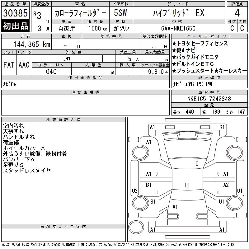TOYOTA COROLLA FIELDER - лот 30385