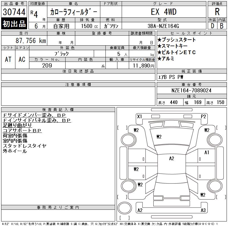 TOYOTA COROLLA FIELDER - лот 30744