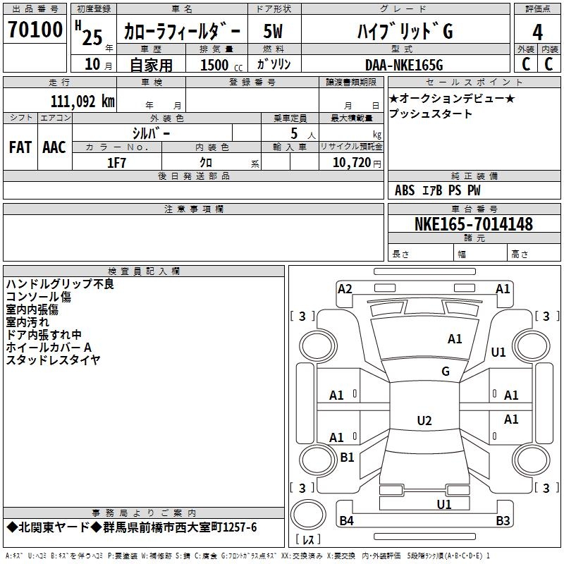 TOYOTA COROLLA FIELDER - лот 70100