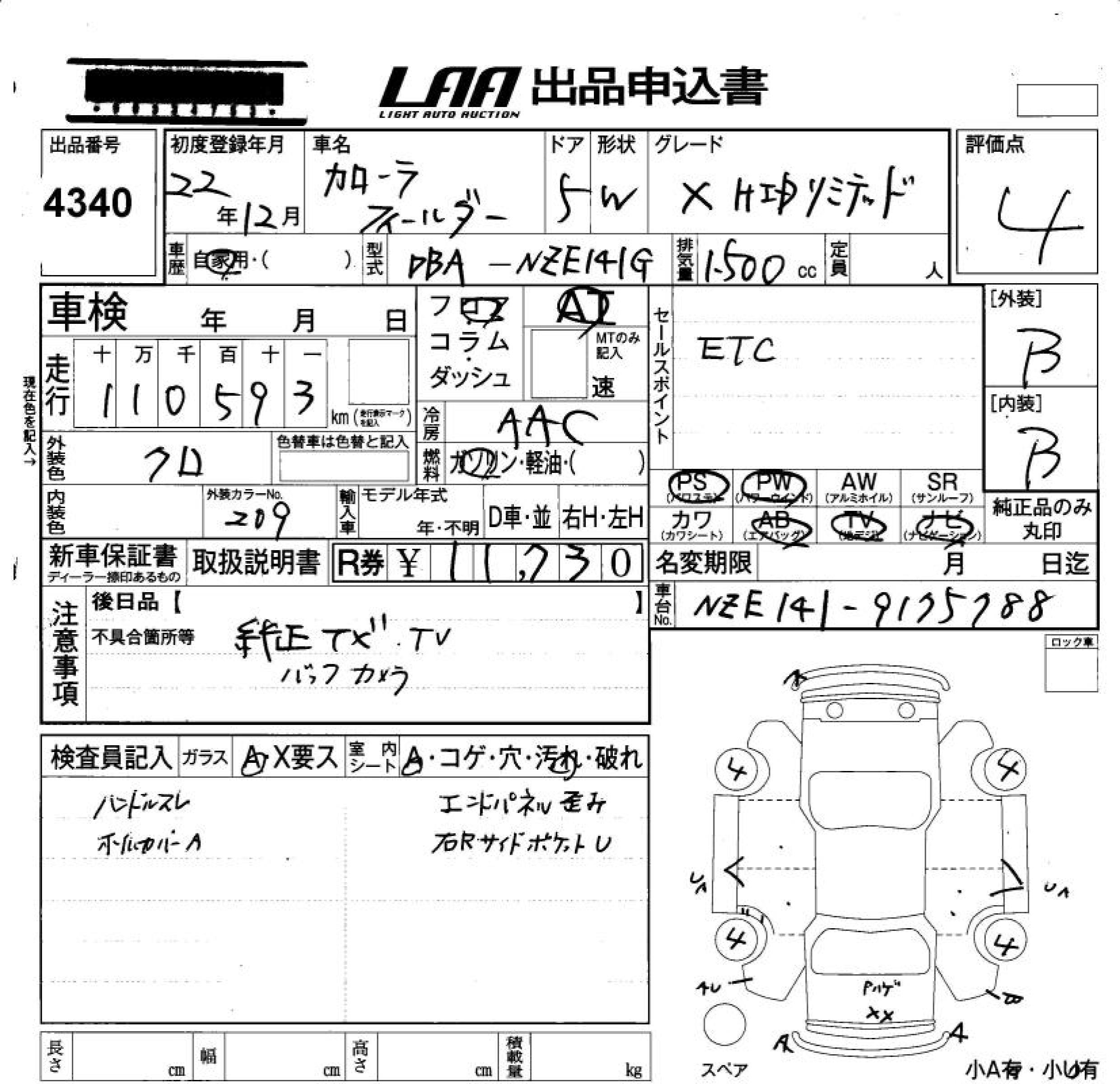 TOYOTA COROLLA FIELDER - лот 4340