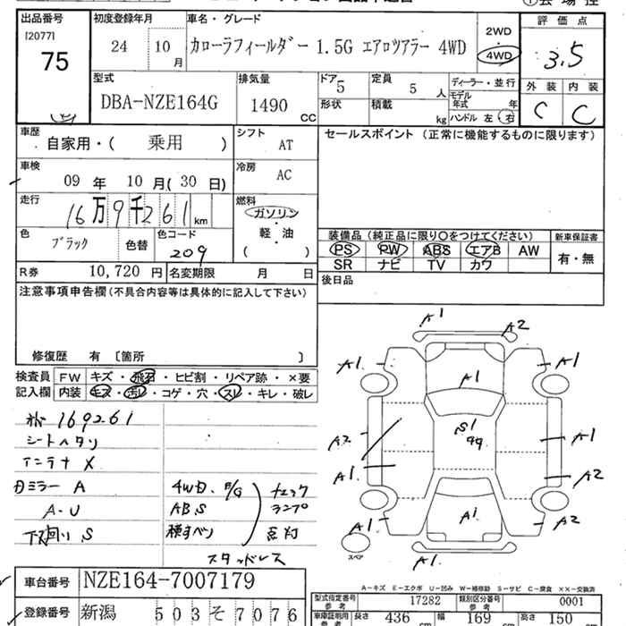TOYOTA COROLLA FIELDER - лот 75