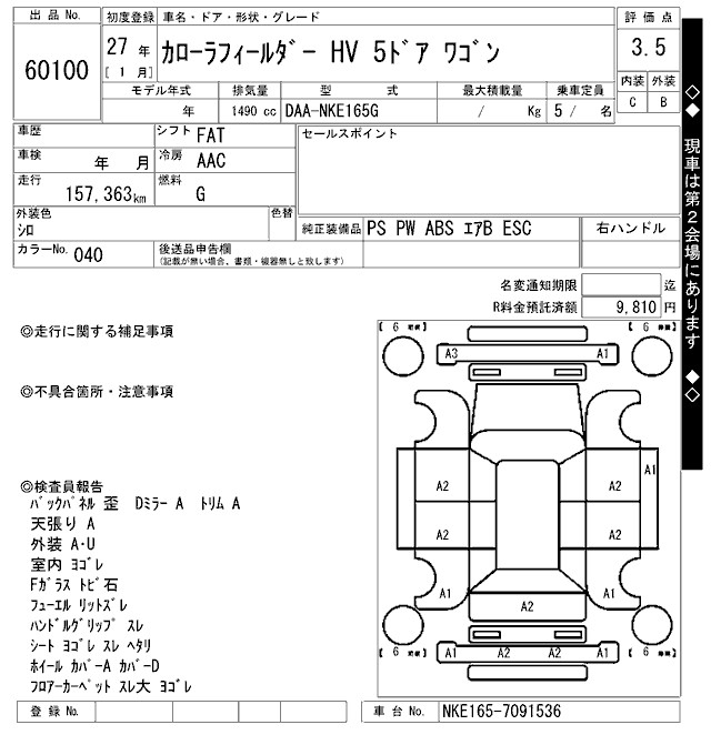 TOYOTA COROLLA FIELDER - лот 60100