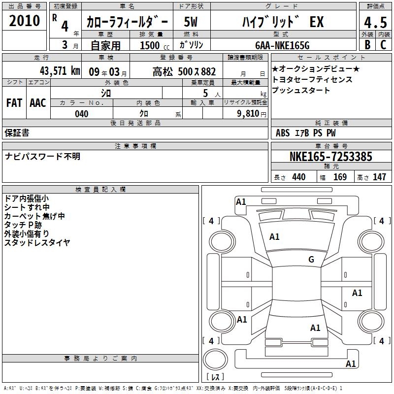 TOYOTA COROLLA FIELDER - лот 2010