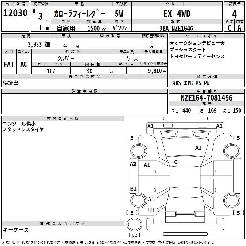 TOYOTA COROLLA FIELDER - лот 12030