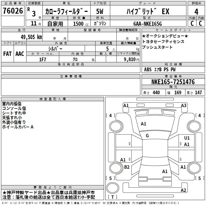 TOYOTA COROLLA FIELDER - лот 76026