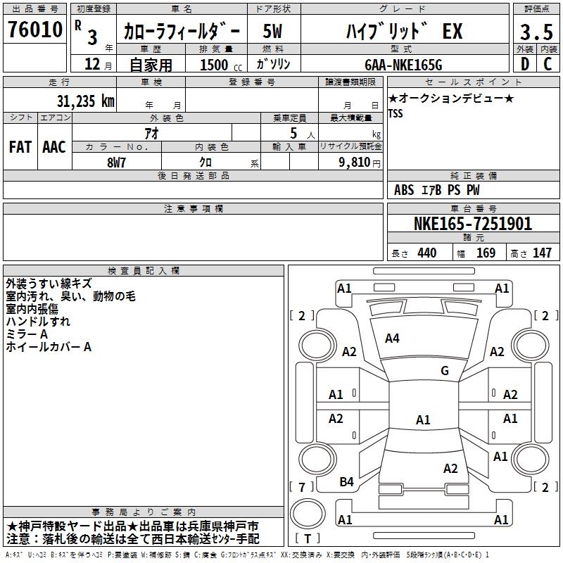 TOYOTA COROLLA FIELDER - лот 76010