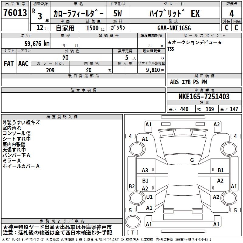 TOYOTA COROLLA FIELDER - лот 76013
