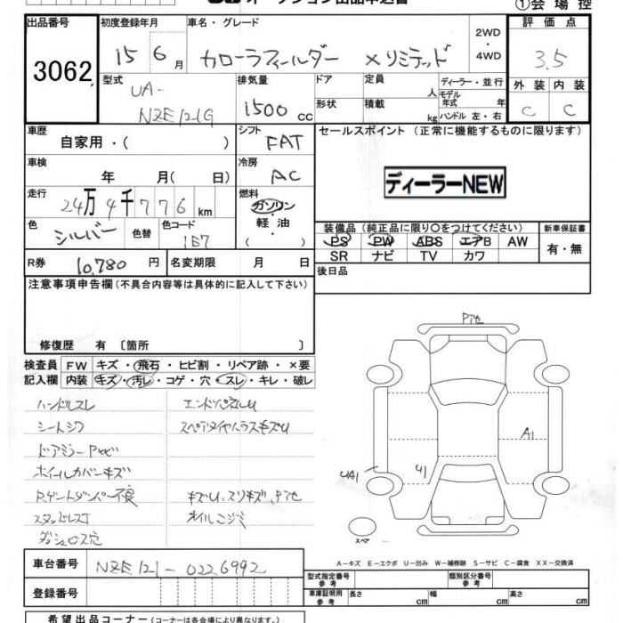 TOYOTA COROLLA FIELDER - лот 3062