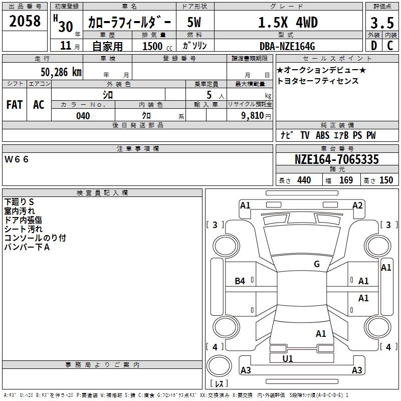 TOYOTA COROLLA FIELDER - лот 2058