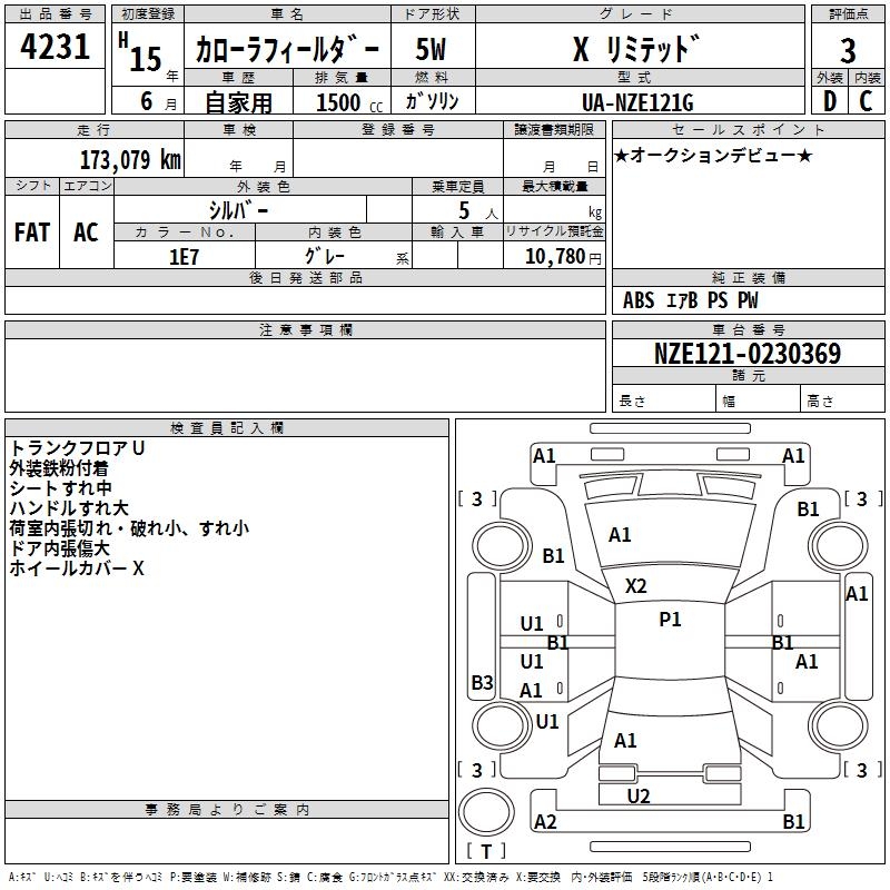 TOYOTA COROLLA FIELDER - лот 4231