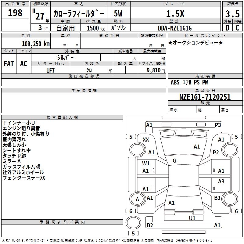 TOYOTA COROLLA FIELDER - лот 198