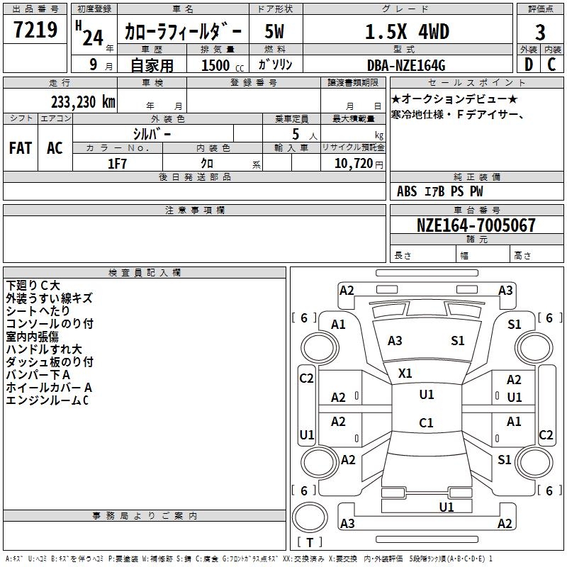 TOYOTA COROLLA FIELDER - лот 7219