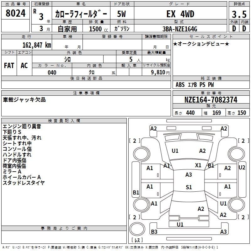 TOYOTA COROLLA FIELDER - лот 8024