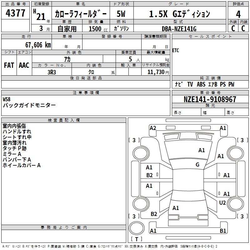 TOYOTA COROLLA FIELDER - лот 4377