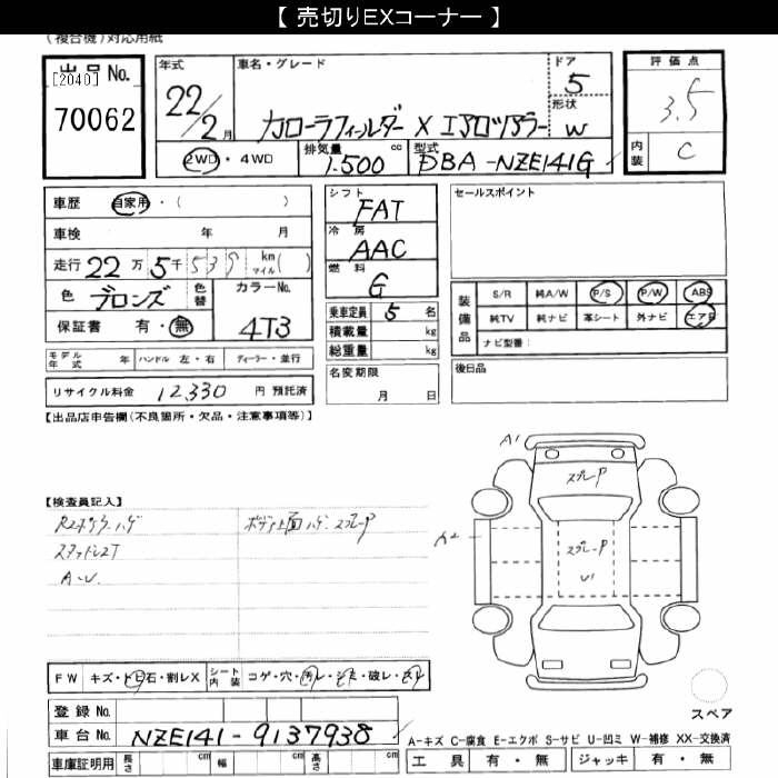 TOYOTA COROLLA FIELDER - лот 70062