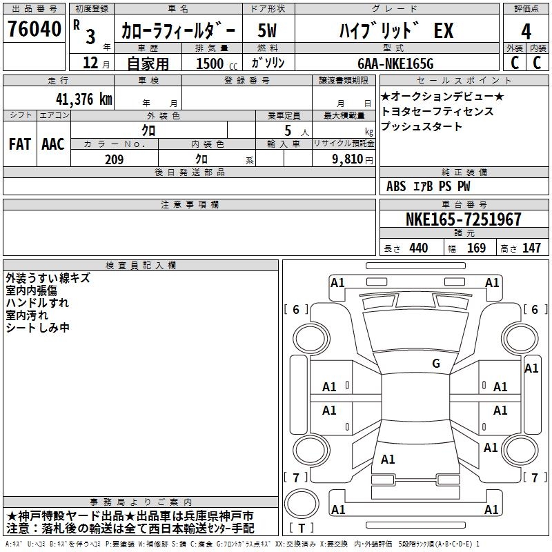 TOYOTA COROLLA FIELDER - лот 76040