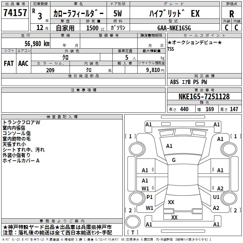 TOYOTA COROLLA FIELDER - лот 74157
