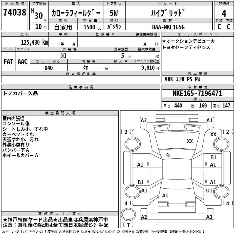 TOYOTA COROLLA FIELDER - лот 74038