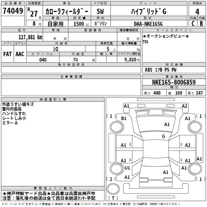 TOYOTA COROLLA FIELDER - лот 74049